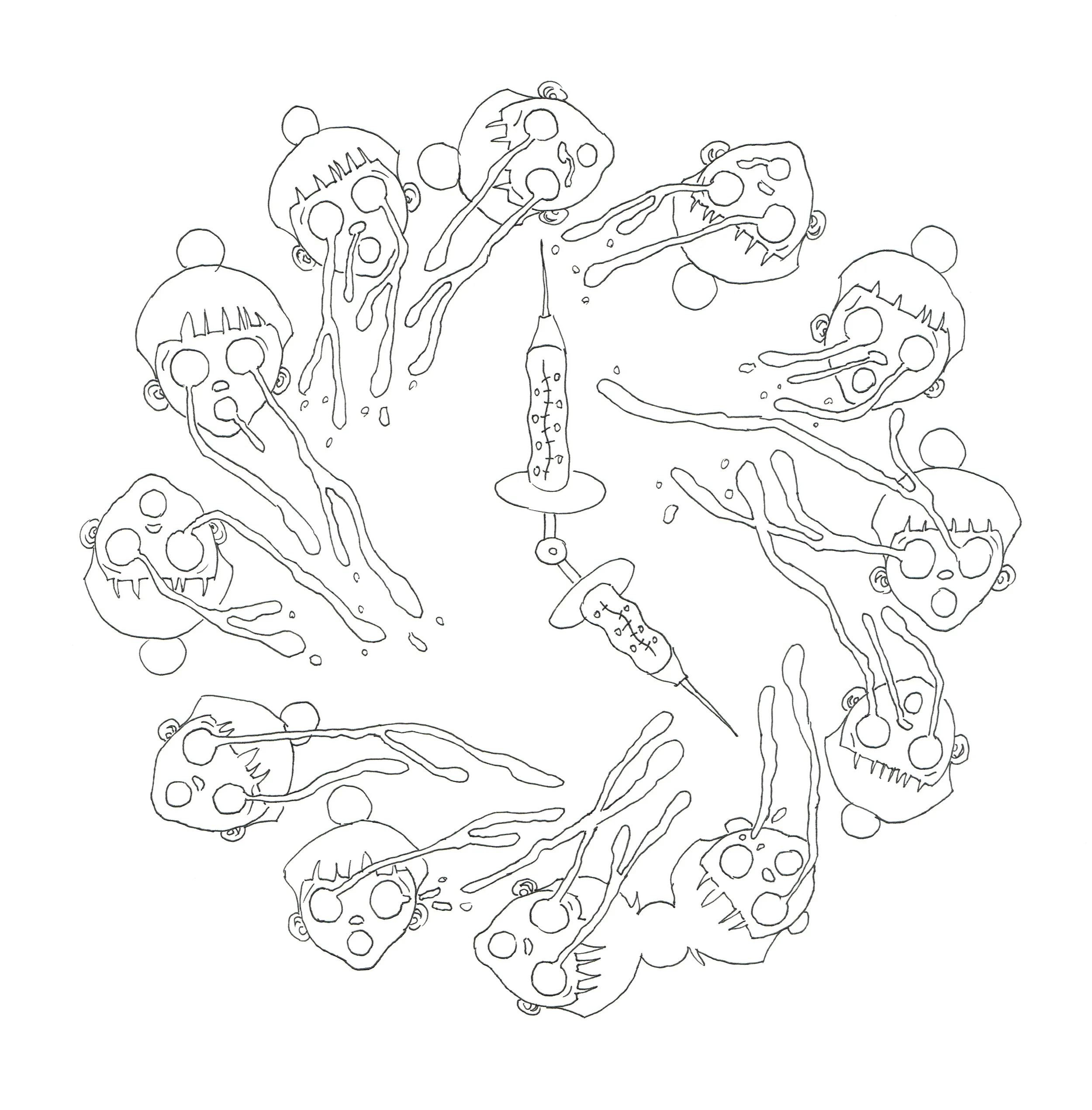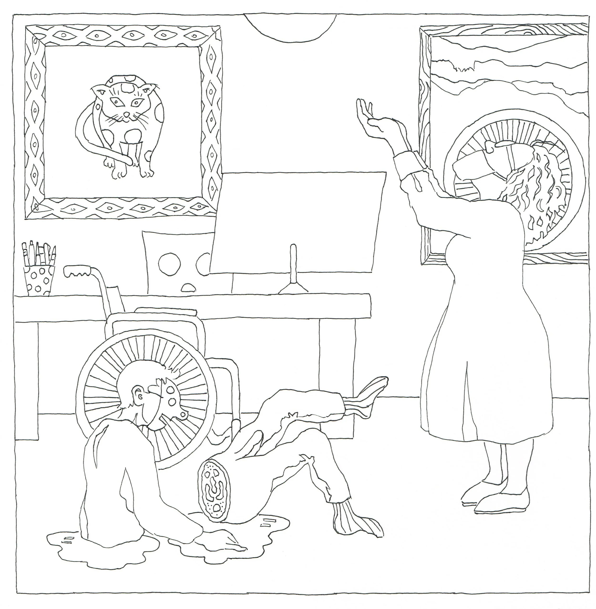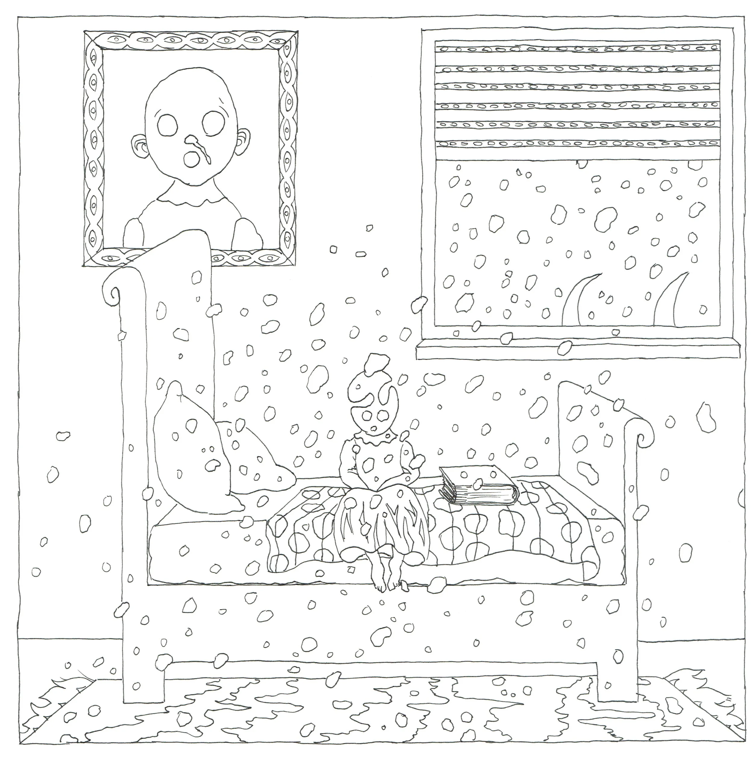Lucy is Sick fathoms a genre of its own: a children book for adults. It employs numerous coloring book drawings and short, lucid texts establish a playful tone set as a trap of seductions; it lures the reader into facing a harsh topic: multiple myeloma, cancer of the bone marrow.