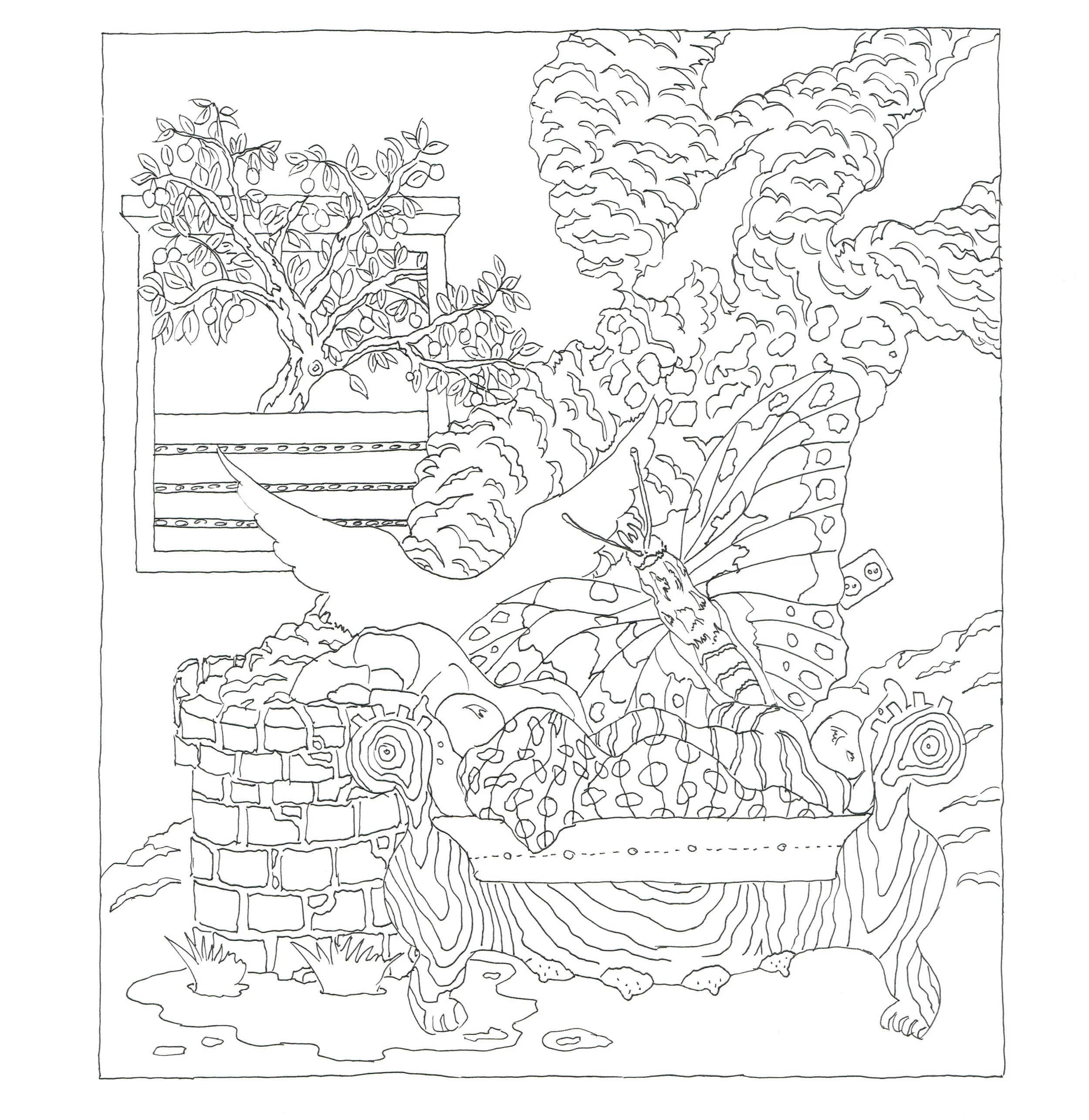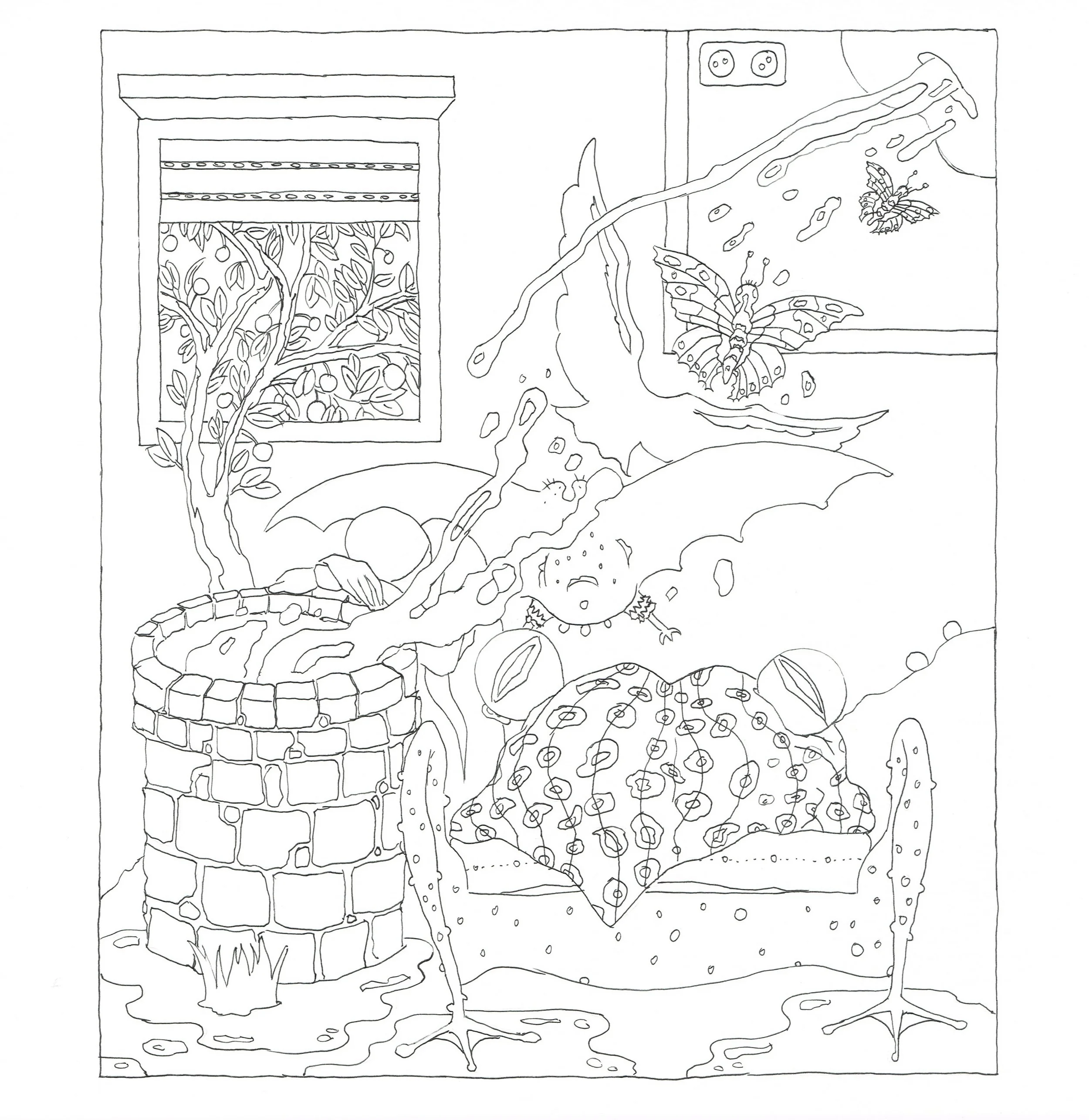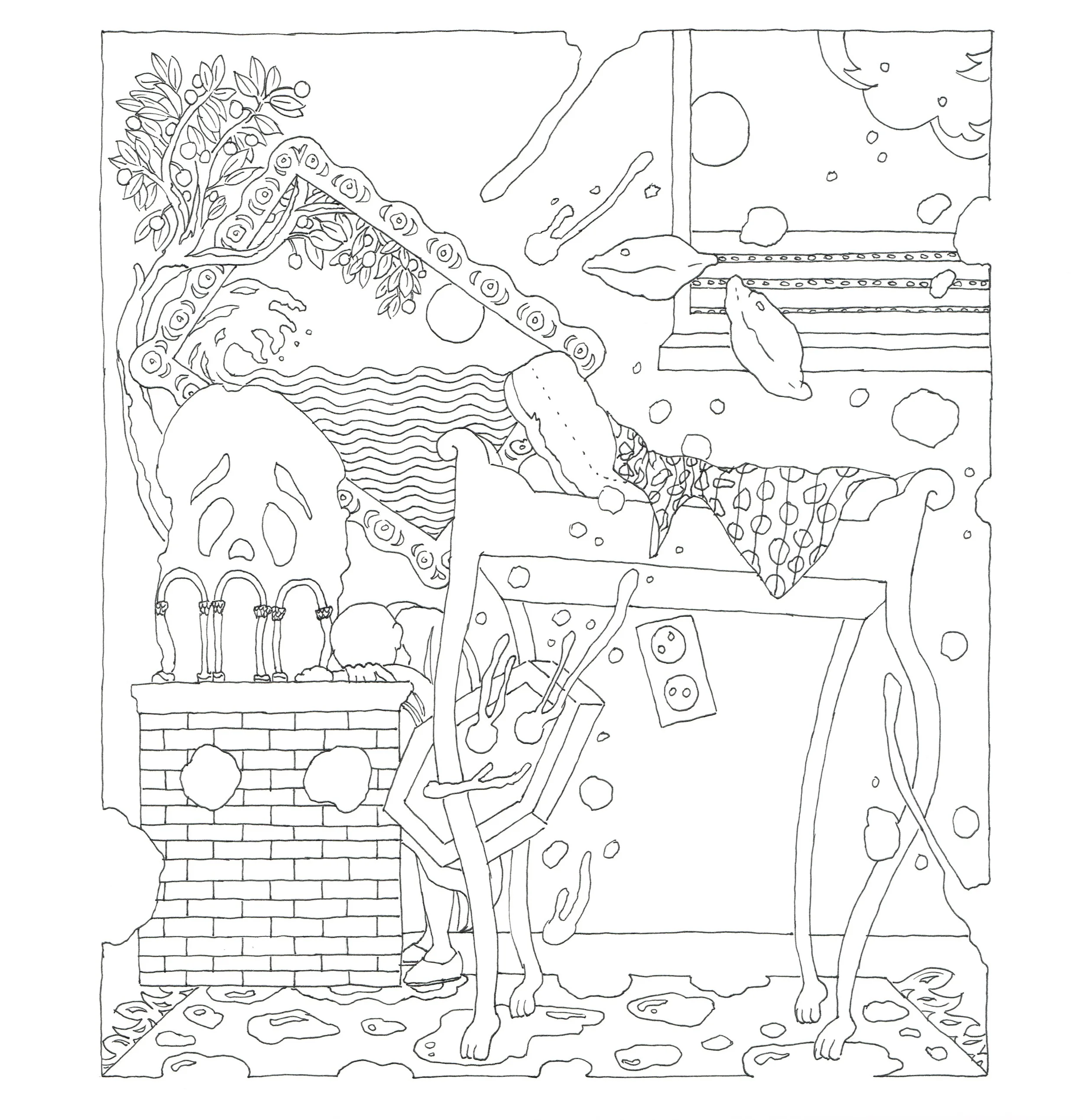 An early publication of the book’s first few chapters was commissioned for the quarantine edition of Steirischer-Herbst festival in 2020, and distributed, under the guise of a coloring book, in the Graz public hospital and through other venues. The full edition of Lucy is Sick evolved over four years, and is forthcoming in Hebrew in 2024 by Pardes publishing house.